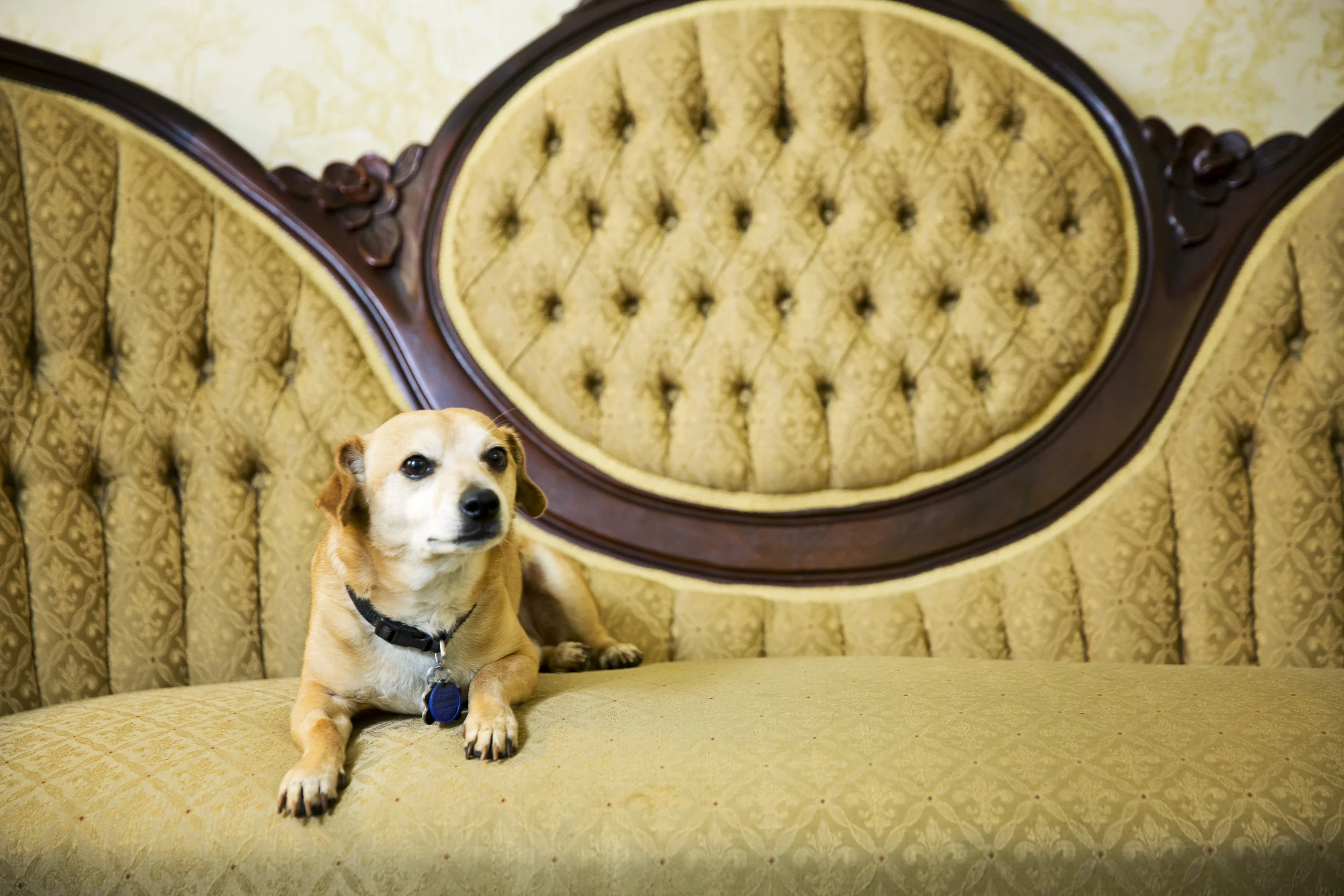 Remy, a Chihuahua-beagle mix, weighs in at 15 lbs. He comes to work 5 days a week and functions as the office greeter and therapy dog.